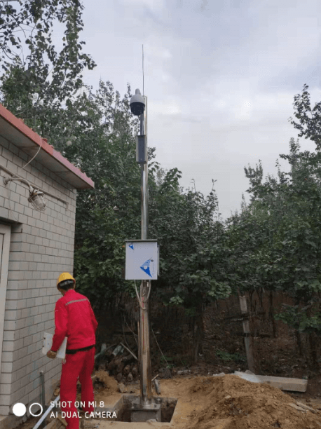 施工現(xiàn)場,監(jiān)控桿高度4.5米,材質(zhì)為純304不銹鋼,壁厚4mm。